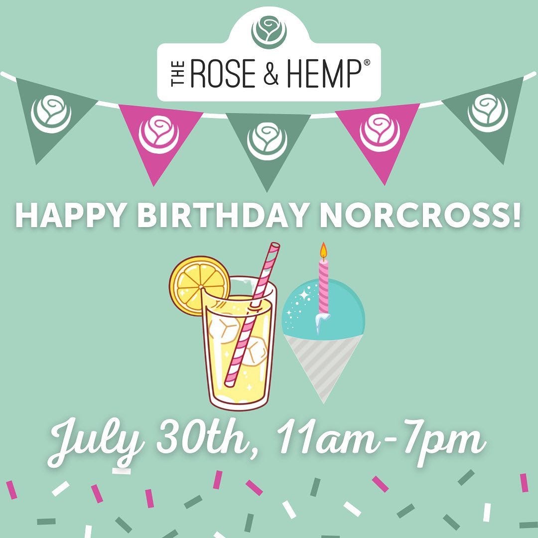 The Rose & Hemp is celebrating one year in Norcross with a party this Sunday July 31! pssst Butter & Cream will be giving away ice cream samples at the celebration starting at 2pm until they are gone.