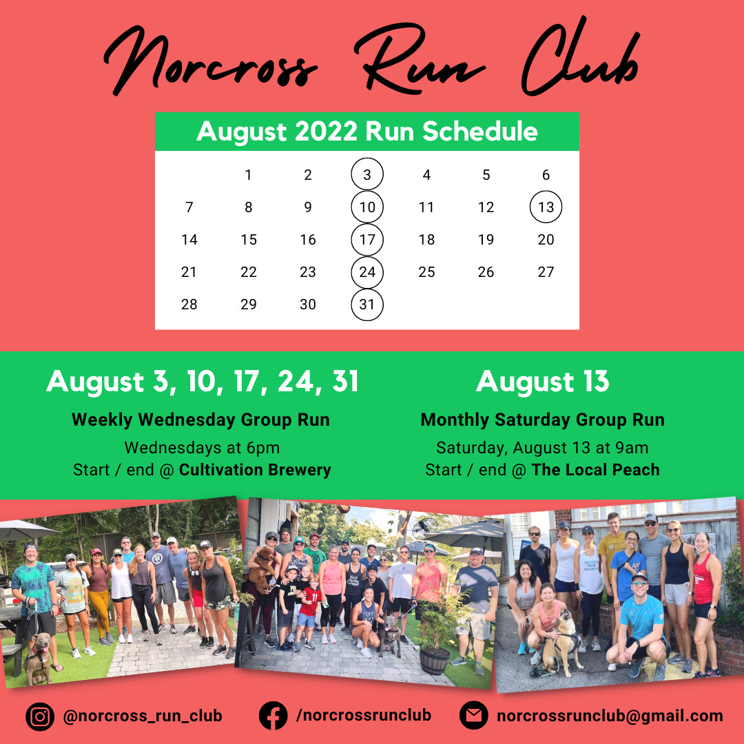 The Norcross Run Club has posted this month's schedule! Follow them on Instagram or Facebook, and sign up here to be added to their monthly communications via email.