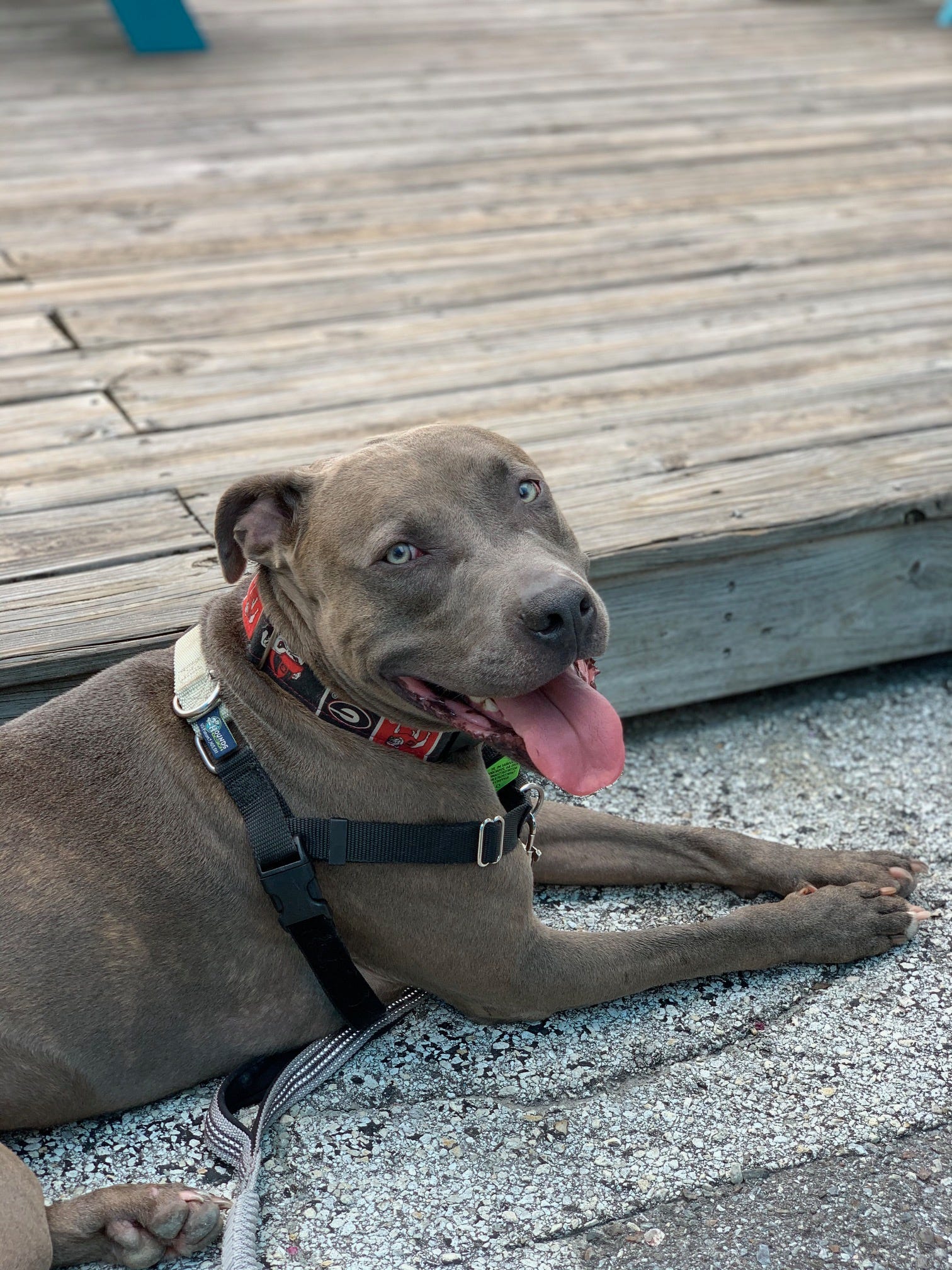 Hi! My name’s Tabouli and I’m a 6 year old blue nose pitty. I live with my parents, Thomas and Eunice, and my older cat brother Baba Ganoush off Holcomb Bridge. We moved to Norcross 4 years ago and tbh I hope we never leave. We always go on long walks around downtown Norcross looking for the elusive albino squirrel and end up at one of my favorite places, Cultivation Brewery.