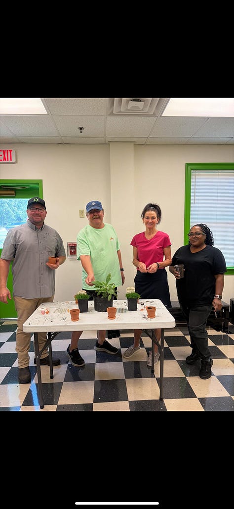 Norcross Discovery Garden members Britt Lancaster, Paul Sumner, Nicole Maxfield-Hooks, and Lottie Luciano Kelly visited Creation Kids to garden with students last week! They planted succulents, explored plants through touch and smell, and added a peach tree to the playground.