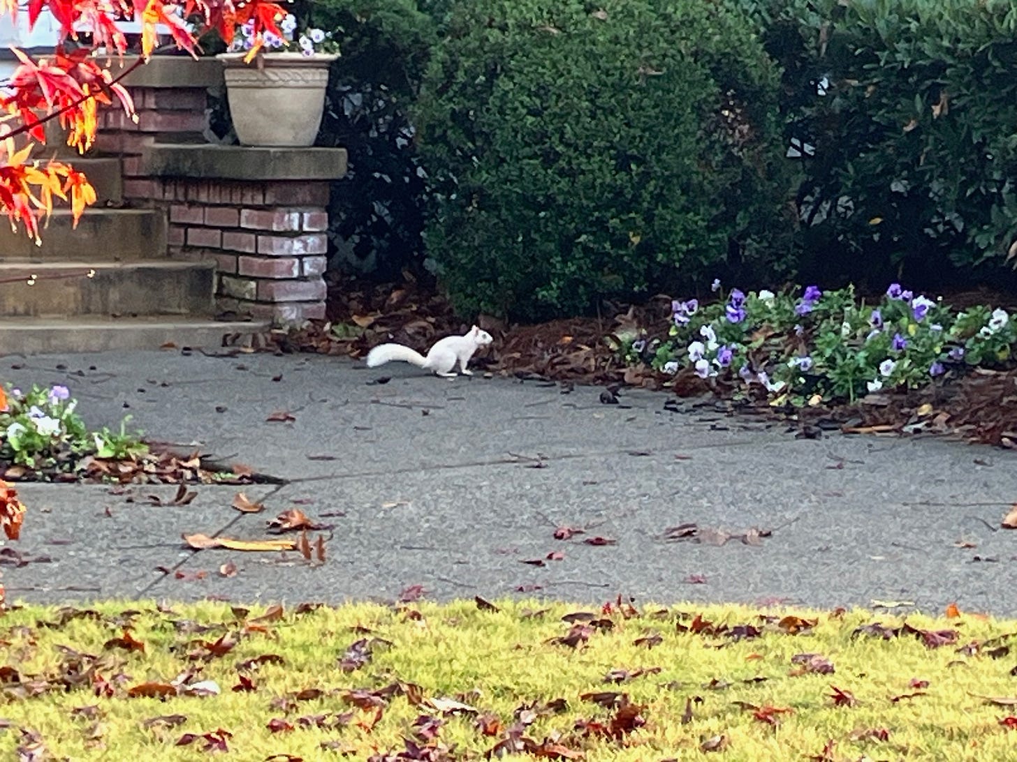 Another white squirrel spotted at the Carlyle House by Bill Elsey!